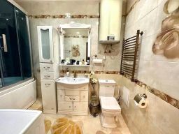 В квартире сделан косметический ремонт, есть вся необходимая мебель на кухне и в комнате. Оснащена современной техникой: кондиционер, холодильник, посудомоечная машина, телевизор и стиральная машина. Ванная комната оборудована душевой кабиной. Приятным бонусом является наличие балкона, где можно наслаждаться свежим воздухом.