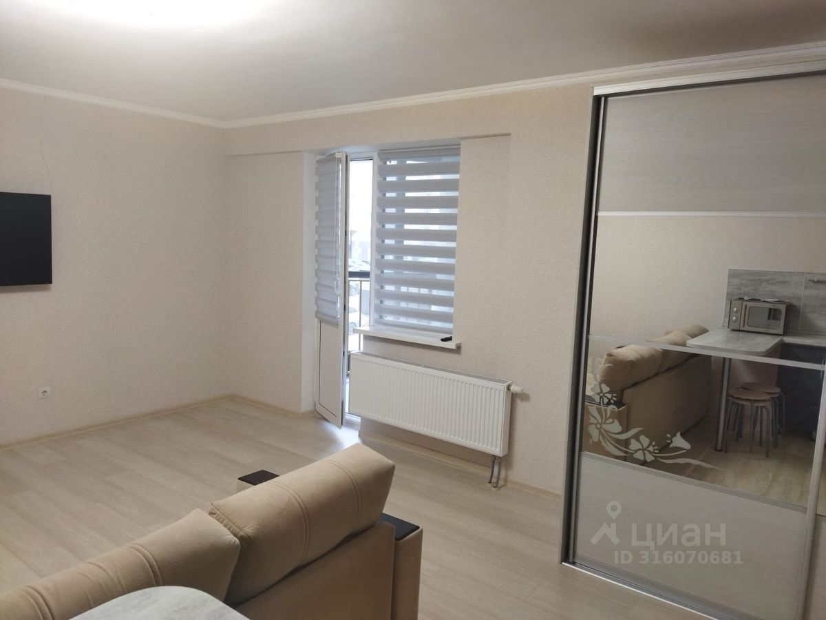 Квартира после евроремонта, полностью готова к проживанию. Просторная студия обставлена необходимой мебелью как на кухне, так и в жилой зоне. Из техники имеются холодильник, телевизор и стиральная машина. Ванная комната оборудована ванной, что позволит вам расслабляться после трудового дня. Имеется балкон для отдыха на свежем воздухе.