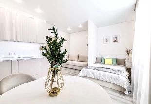 Квартира полностью оборудована всем необходимым для комфортного проживания. Просторная комната и кухня обставлены современной мебелью. В наличии вся необходимая техника: холодильник, телевизор и стиральная машина. В совмещённом санузле установлена душевая кабина. Балкон позволяет насладиться свежим воздухом и видом на город.