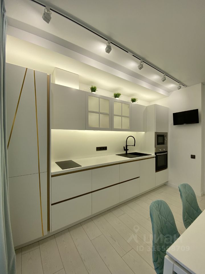 В квартире сделан дизайнерский ремонт, все в белых и светлых тонах в сочетании с Тиффани,что придает ей современный и уютный вид. Есть вся необходимая техника: кондиционер, холодильник, телевизор и стиральная машина. Мебель расположена как в комнате, так и на кухне. Раздельный санузел оборудован ванной. Также имеется лоджия,установлен столик удобные стулья,где можно наслаждаться свежим воздухом и красивыми видами.