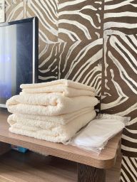 В апартаментах есть всё для комфортного времяпровождения: чистое постельное бельё, полотенца, фен, утюг, посуда, бутилированная вода, предметы женской гигиены, кондиционер, стиральная машина