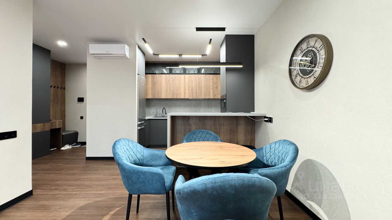 Квартира выполнена в дизайнерском стиле, что подчеркнёт ваш вкус и стиль жизни. В ней есть всё необходимое для комфортного проживания: современная мебель на кухне и в комнатах, а также вся необходимая техника — кондиционер, посудомоечная машина, холодильник, телевизор и стиральная машина. Окна выходят во двор, обеспечивая тишину и уют. Ванная комната оборудована ванной, что особенно приятно после долгого дня. Из квартиры есть выход на балкон, где можно наслаждаться свежим воздухом.