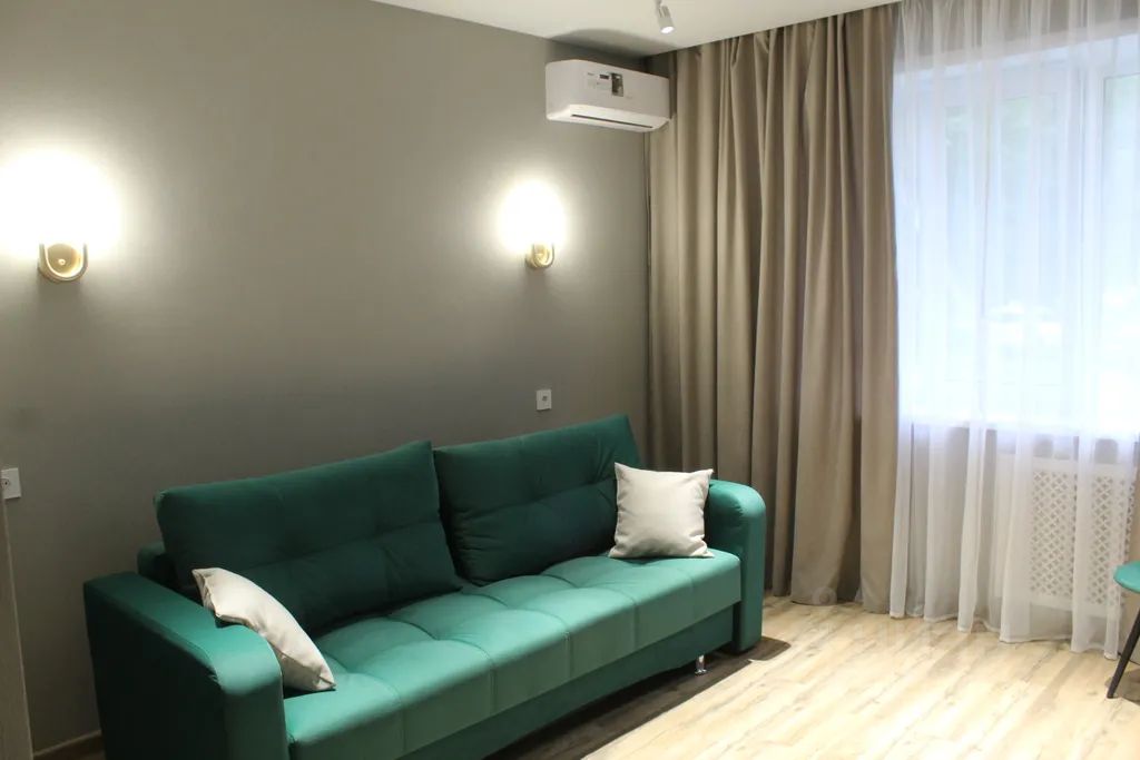 Квартира обладает стильным дизайнерским ремонтом, который сочетает в себе уют домашнего очага и современные интерьерные решения. В квартире недавно сделан ремонт. Пространство организовано таким образом, чтобы обеспечить комфортное проживание. Две изолированные комнаты: спальня с большой кроватью и зал с раскладывающимся удобным диваном. Окна квартиры выходят на приятный, тихий зелёный двор.