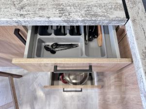 Кухня оборудована техникой, посудой