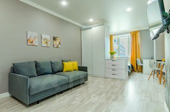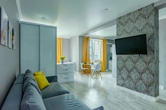 Полностью оборудованная квартира с уютной зоной отдыха, телевизором и Wi-Fi.