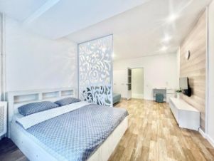Светлая квартира расположена в удобной локации. Эти апартаменты — идеальный выбор для тех, кто ценит комфорт и удобство.