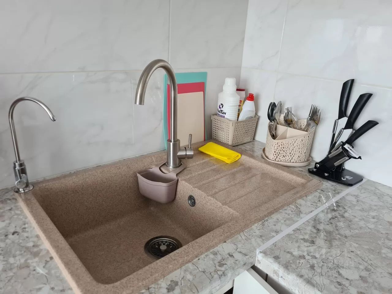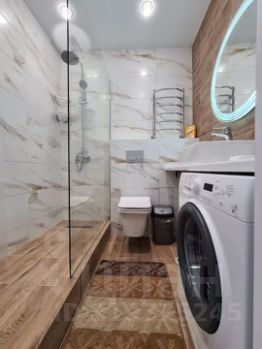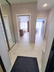 В квартире выполнен качественный ремонт, интерьер оформлен в светлых тонах. В жилой зоне и на кухне есть вся необходимая мебель и техника: кондиционер, холодильник и стиральная машина. Планировка квартиры удобна и функциональна, а в ванной комнате установлена современная душевая кабина.