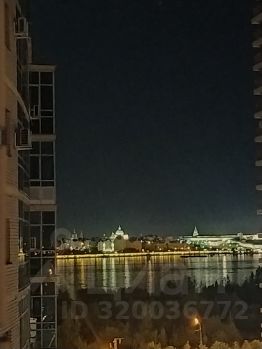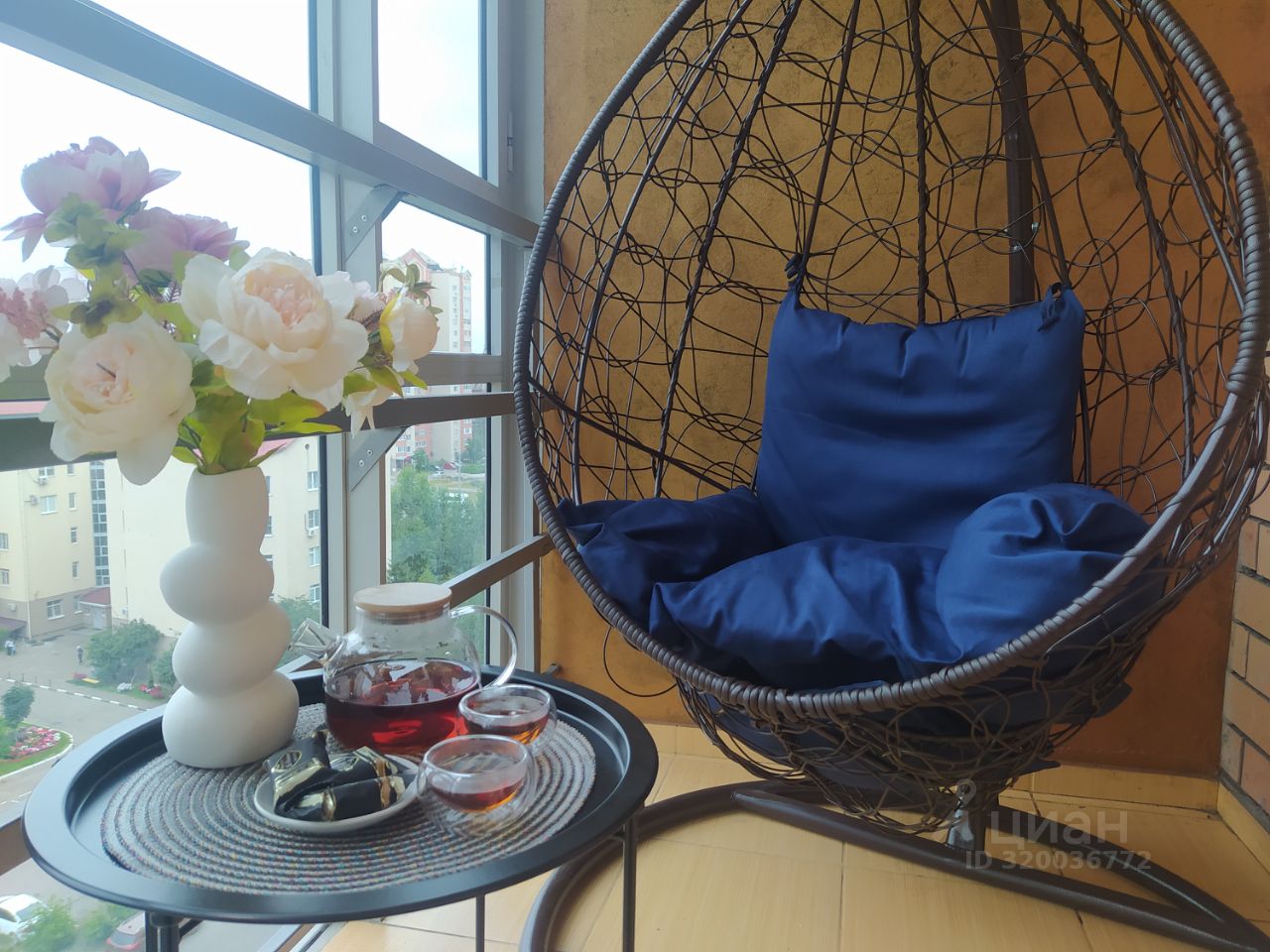 Зона отдыха на панорамном балконе с видом на реку и кремль.