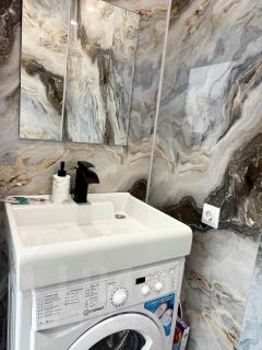 В ванной комнате располагается стиральная машина, раковина , унитаз ,средства гигиены и полотенца . В душевой комнате только душ . Квартира рассчитана на двух человек.