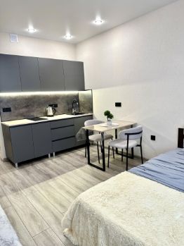 У нас вы найдете абсолютно все для комфортного проживания. Студия оснащена всей необходимой техникой и мебелью, рассчитана для комфортного проживания 4х человек.