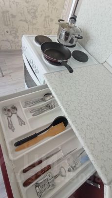 Кухня оборудована столовыми приборами, посудой для приготовления пищи и еды. Имеется эл. чайник, микроволновка, холодильник.