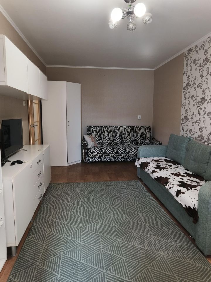В квартире сделан косметический ремонт. Есть вся необходимая мебель как в комнате, так и на кухне. Кухня оборудована холодильником, а в гостиной есть телевизор. Ванная комната оснащена ванной и стиральной машиной, поэтому можно сразу заехать и жить без лишних забот. Планировка удобная, с одним совмещённым санузлом и балконом для вечернего отдыха.