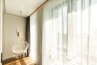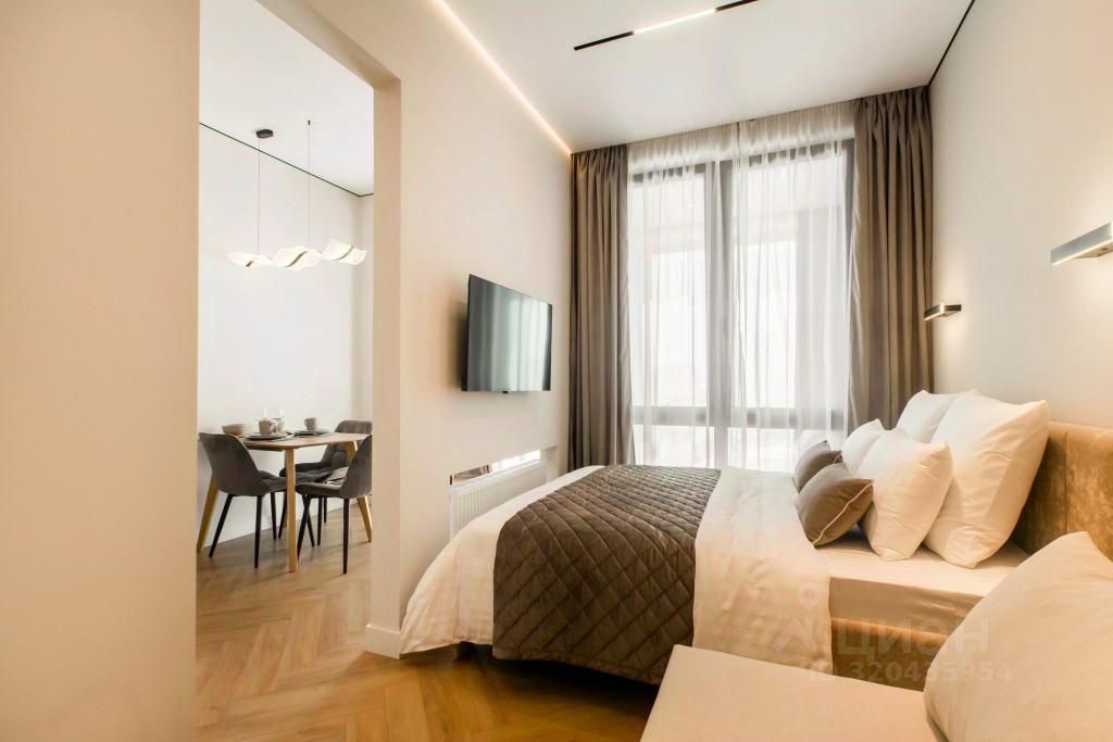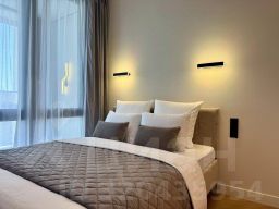 Апартаменты с панорамными окнами имеют дизайнерское оформление. Гостям доступна система "умный дом": через умную колонку настраиваются свет, шторы, кондиционер, тёплые полы, телевизор и музыка. Кухня со встроенной техникой. Санузел с тропическим душем, тёплыми полами и сантехникой.