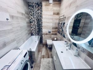 В квартире есть все необходимое для комфортного проживания: современный ремонт, мебель на кухне и в комнате. Полностью оборудованная техника включает кондиционер, холодильник, посудомоечную и стиральную машины, а также телевизор. Ванная комната оснащена как ванной, так и душевой кабиной, что позволяет выбрать наиболее удобный способ расслабления после рабочего дня.
