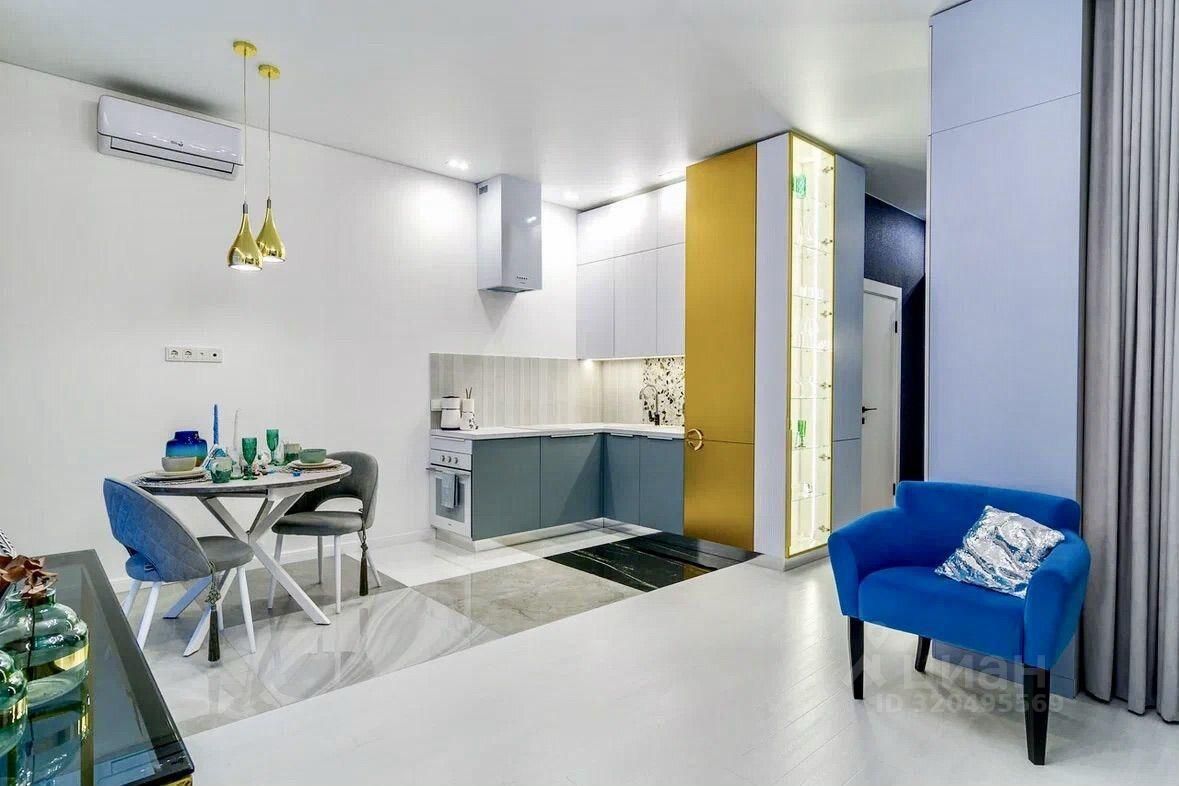 Квартира полностью обустроена и готова к комфортному проживанию. На кухне вас ждёт современная мебель и вся необходимая техника, включая холодильник и кондиционер. В комнате есть удобная мебель для отдыха и работы. В ванной комнате установлена как ванна, так и душевая кабина, поэтому вы сможете выбрать, как расслабиться после долгого дня. По всей квартире есть теплый пол.