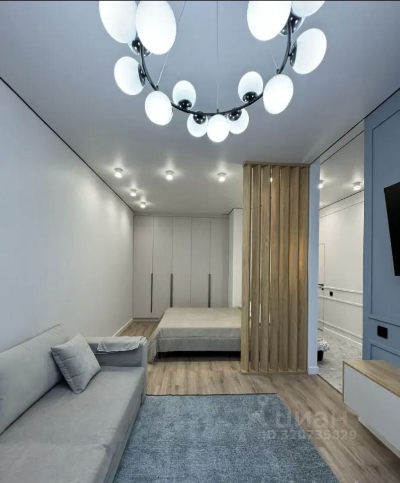 Квартира с дизайнерским ремонтом, полностью готова для комфортного проживания. В просторной кухне площадью 17 кв. м есть вся необходимая мебель и техника: холодильник, посудомоечная машина и кондиционер. В комнате также есть мебель и телевизор. Ванная комната оборудована современной душевой кабиной. Окна квартиры выходят во двор, поэтому вас не будут беспокоить городские шумы. Дополнительно к удобствам имеется интернет и телефонная связь.