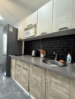 Квартира с качественным евроремонтом, полностью готова к комфортному проживанию. В комнатах и на кухне есть вся необходимая мебель. В арсенале техники: кондиционер, холодильник, телевизор и стиральная машина. В ванной установлена современная душевая кабина. Балкон добавляет удобства и позволяет наслаждаться свежим воздухом.