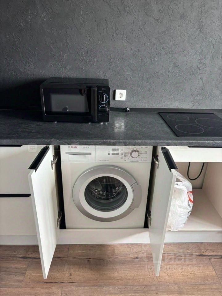 Жильцам предоставляется из мебели: кухонный гарнитур, кровать, шкаф, cтол, стулья. Из техники: холодильник, микроволновая печь, варочная панель, стиральная машина.