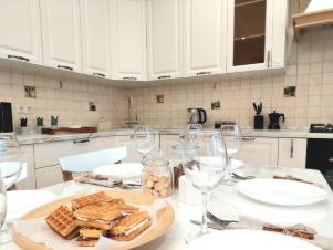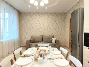 В квартире есть все необходимое для проживания 8 гостей: