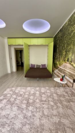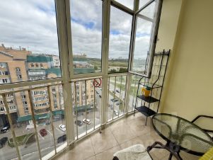 В квартире есть всё необходимое для комфортного проживания. Просторная кухня площадью 15 кв. м оснащена современной бытовой техникой: холодильником, посудомоечной машиной и кондиционером. В комнате и на кухне есть мебель, а также телевизор. Ванная комната оборудована ванной и стиральной машиной. На балконе можно наслаждаться свежим воздухом и видом на город.