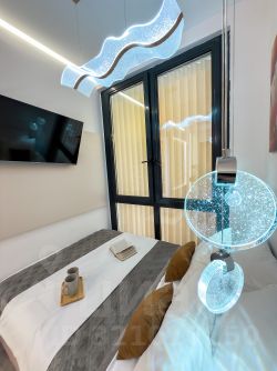 Квартира с дизайнерским ремонтом, обставлена современной мебелью и полностью готова для комфортного проживания. В комнате и на кухне есть вся необходимая мебель. Установлена современная техника: кондиционер, холодильник, телевизор и стиральная машина. Санузел совмещённый, с душевой кабиной. Окна квартиры выходят на улицу, что обеспечивает хорошее освещение.