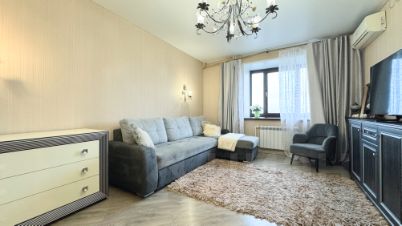 В квартире выполнен евроремонт, что обеспечивает современный и стильный интерьер. В комнатах и на кухне есть вся необходимая мебель. Из техники в вашем распоряжении: кондиционер, холодильник, посудомоечная машина, телевизор и стиральная машина. Окна выходят во двор, поэтому вам не будет мешать шум улицы. Санузел совмещённый, оборудован ванной. Есть балкон, где приятно выпить утренний кофе.