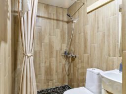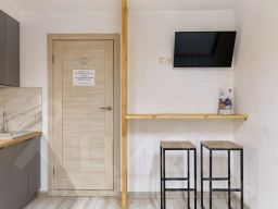 Гостей ждёт комфортный двухспальный диван с ортопедическими подушками. Все удобства прямо в апартаментах: бесплатный Wi-Fi для работы и отдыха, собственная ванная комната с гигиеническими средствами, мини-кухня с посудой и техникой: микроволновая печь, холодильник, чайник, вентилятор в жаркое время года, уборка с дезинфекцией после каждого гостя. Гостям доступны питьевой фильтр, гладильная доска и утюг в общей зоне.