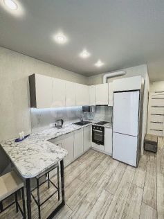 Квартира полностью оборудована для жилья. Есть вся техника и мебель: холодильник, микроволновая печь, духовой шкаф, конвенционная плита и вся к ней необходимая посуда. Есть полноценная кровать, которая "выпадает" из шкафа, которая позволяет проводить ночь с комфортом и сэкономить место днем!