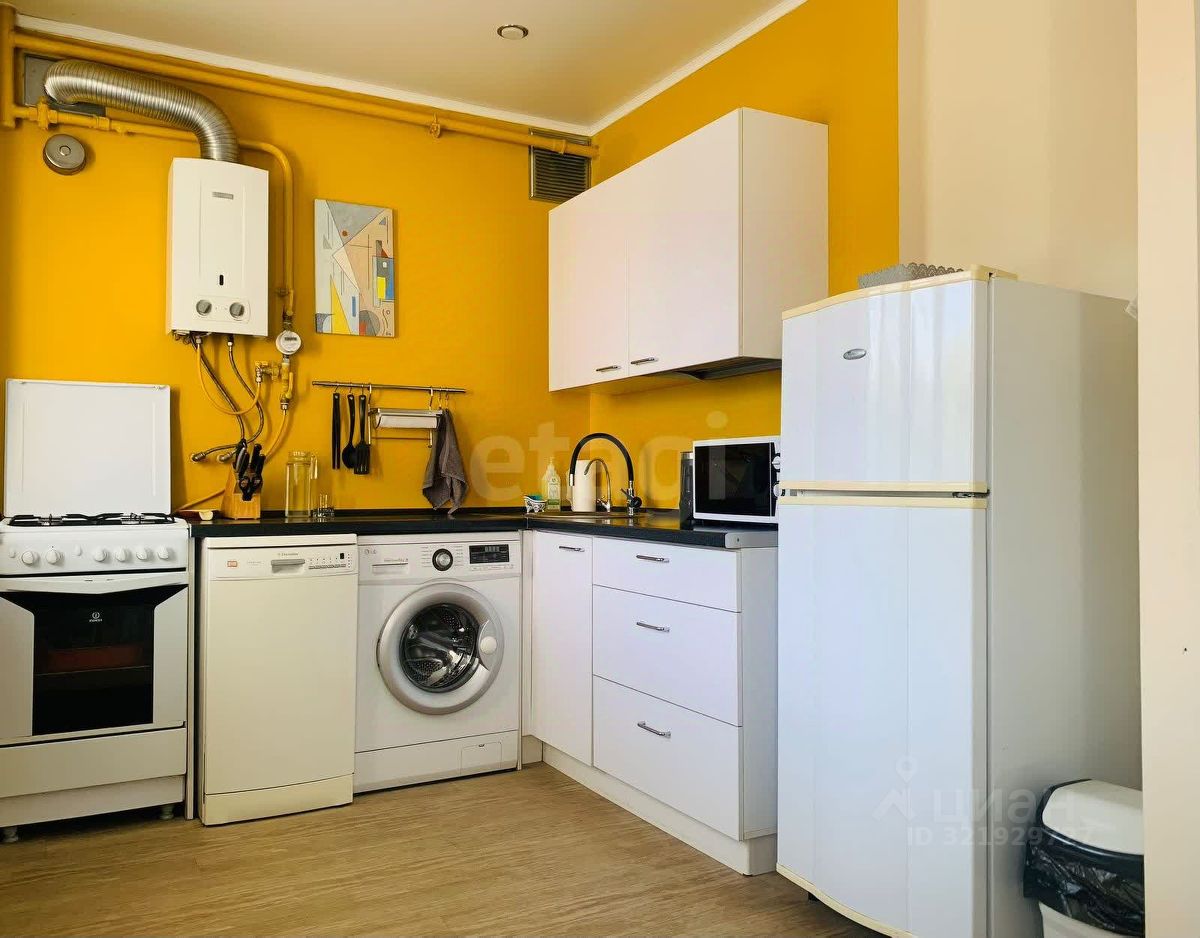 Газовая, кух. плита, эл. чайник, тостер, микроволновая печь, посудомоечная и стиральная машина, холодильник, необходимая посуда.