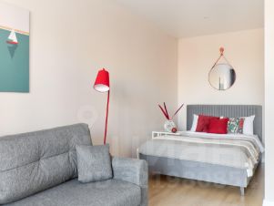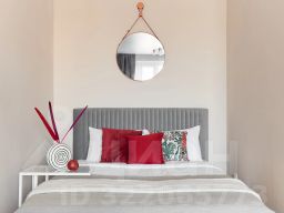 Изолированная просторная комната, в которой расположены двуспальная кровать и уютный раскладной диван. Панорамная остекленная лоджия позволит насладиться закатами и рассветами.