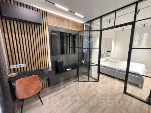 • Уютная спальня + просторная кухня-гостиная; стеклянная перегородка — приватность и стиль;