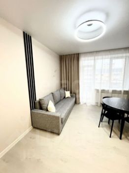 Квартира полностью меблирована современными и эргономичными предметами интерьера. Встроенная кухня укомплектована современной бытовой техникой: посудомоечной машиной, варочной панелью, духовым шкафом и холодильником