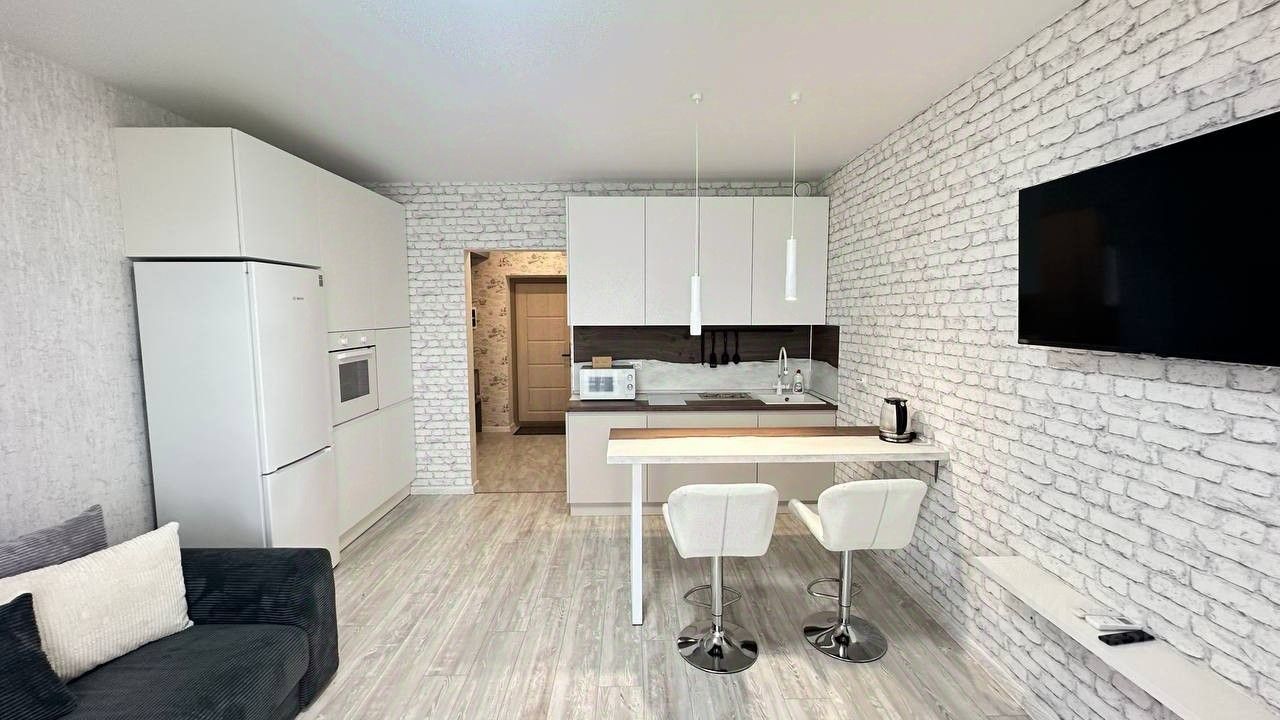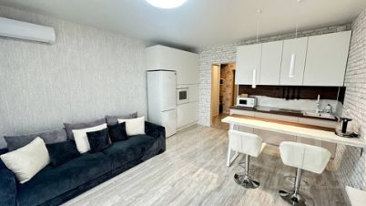 В квартире сделан косметический ремонт, есть вся необходимая мебель как на кухне, так и в комнате. Встроенная техника включает в себя кондиционер, холодильник, телевизор и стиральную машину, поэтому можно сразу заселяться и жить с комфортом. Совмещенный санузел оборудован душевой кабиной. Также есть балкон, где можно отдохнуть на свежем воздухе.