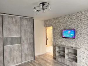 В квартире выполнен современный евроремонт, что создает уютную и комфортную атмосферу для проживания. В комнате и на кухне есть вся необходимая мебель. Квартира оснащена современной техникой: кондиционер, холодильник, телевизор, стиральная и посудомоечная машины. В ванной комнате установлена ванна, что делает ее идеальным местом для отдыха после долгого дня. Также в квартире есть один совмещенный санузел и балкон, где можно наслаждаться свежим воздухом.
