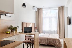 В квартире расположена большая ортопедическая кровать, сон на которой здоровый, крепкий, восстанавливающий