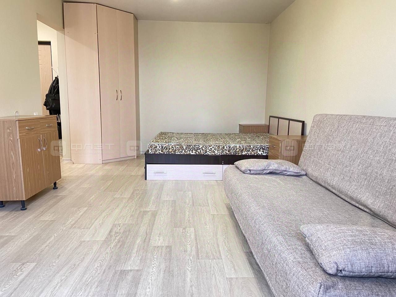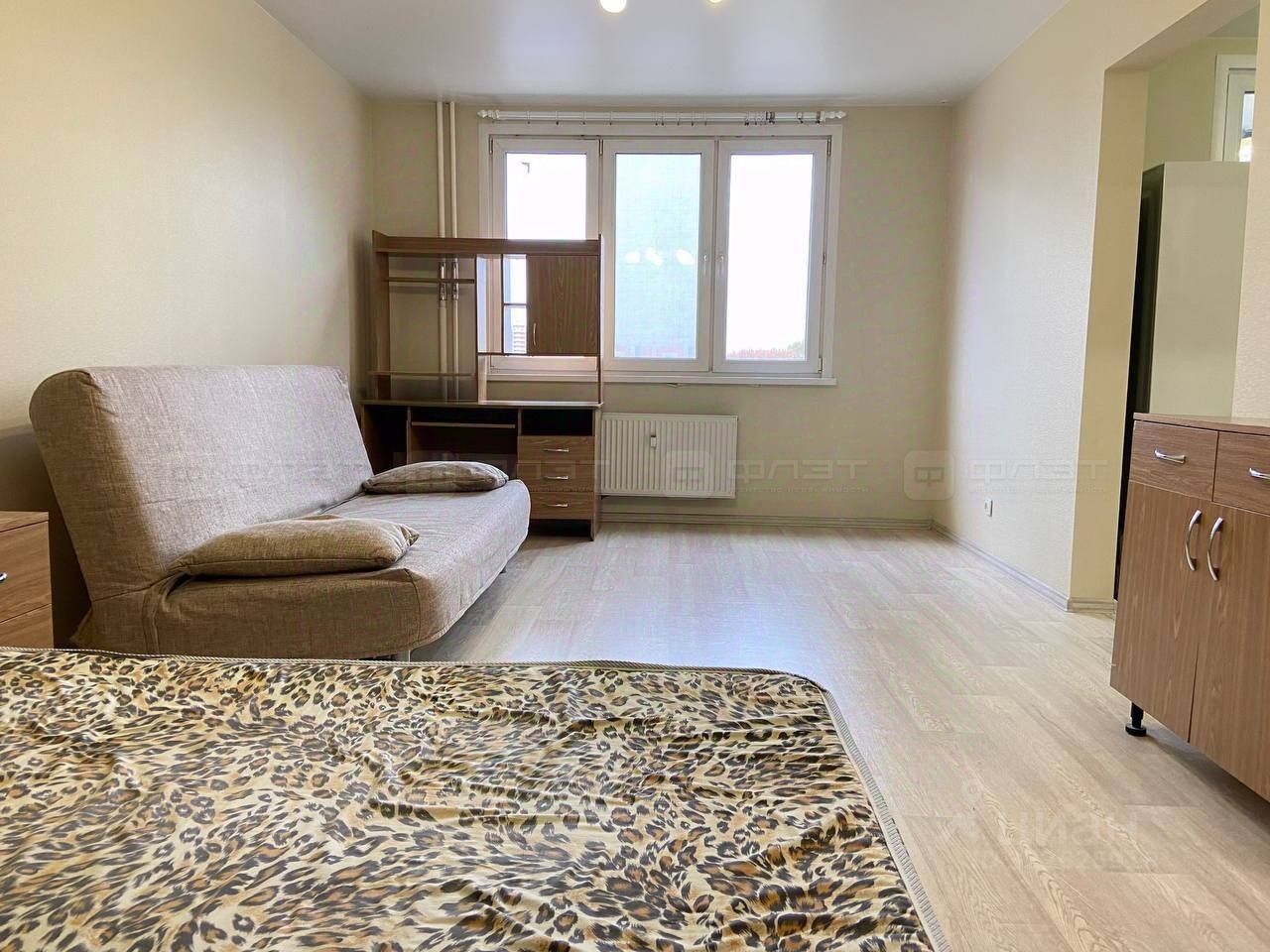 В квартире сделан свежий ремонт. Полы: линолеум. Окна: пластиковые. Потолки: натяжные. Сан. узел в кафеле. Есть балкон.