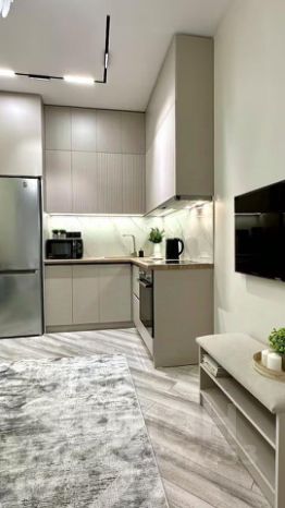 В квартире выполнен дизайнерский ремонт. Обстановка продумана до мелочей: есть вся необходимая мебель на кухне и в комнате. Квартира оснащена современной техникой, включая кондиционер, холодильник, телевизор и стиральную машину. Ванная комната оборудована душевой кабиной и совмещена с санузлом. Из окон открывается вид на улицу, а на балконе можно наслаждаться свежим воздухом.