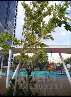 В квартире сделан дизайнерский ремонт с использованием качественных материалов. Всё готово для комфортного проживания: на кухне и в комнате есть вся необходимая мебель, а также полный набор техники — кондиционер, холодильник, телевизор и стиральная машина. Ванная комната оборудована душевой кабиной. Для удобства жильцов предусмотрен один пассажирский и один грузовой лифт.
