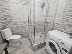 В квартире сделан косметический ремонт, что придает ей свежий и современный вид. Высокие потолки 2.7 метра создают ощущение простора. Кухня площадью 8 кв. м полностью укомплектована необходимой мебелью и техникой, включая холодильник и стиральную машину. В комнате также имеется вся необходимая мебель для комфортного проживания. Санузел совмещенный, оборудован душевой кабиной. Из комнаты есть выход на балкон.
