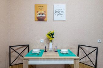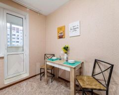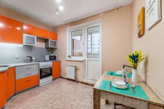 Площадь квартиры — 37 кв. м. В помещении выполнен ремонт, установлена необходимая мебель, предоставляются посуда, стиральная машина, фен и утюг. Гостям выдаются чистые сменные комплекты белья, полотенца и одноразовые гигиенические наборы при заселении. Во дворе есть детская и спортивная площадки.