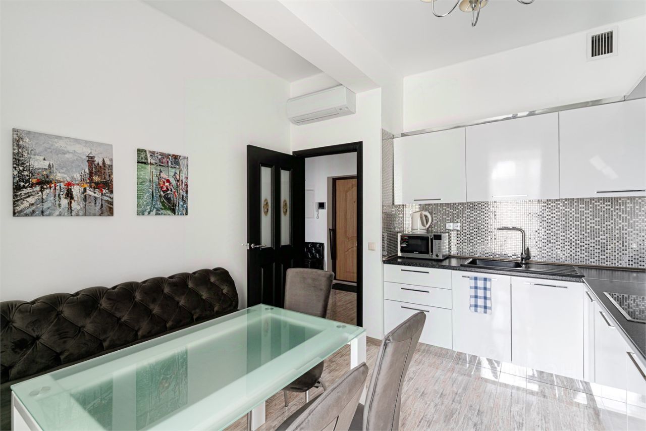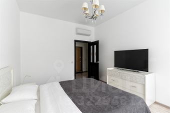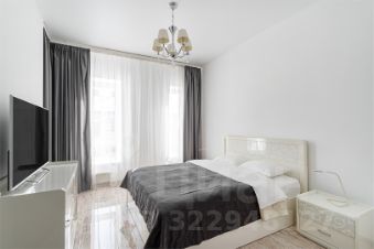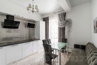 Дизайнерский ремонт, внимательный подход к деталям, мебель и техника высшего класса. В комнате четкое зонирование: спальная зона и обеденная зона.