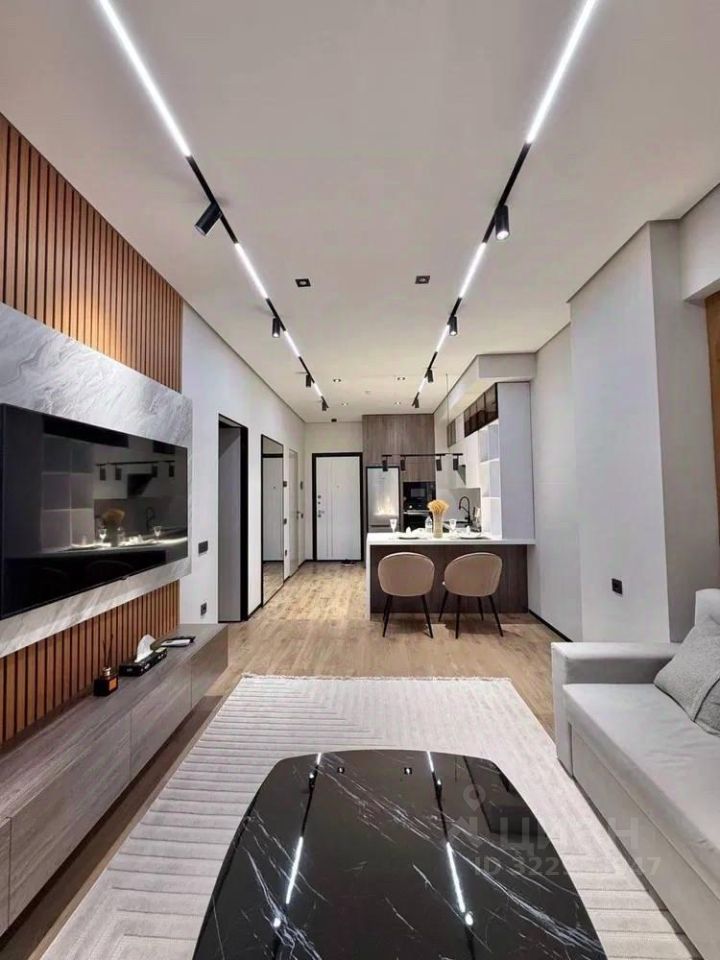 Сдаётся стильная квартира с дизайнерским ремонтом в современном доме, построенном в 2021 году. Общая площадь — 55 кв. м, жилая — 30 кв. м, кухня — просторные 17 кв. м. Квартира находится на 9 этаже 26-этажного дома. Высота потолков — 2.9 метра, а окна выходят на улицу, что обеспечивает хорошее естественное освещение.