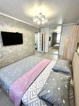 В квартире имеется весьма вместительный шкаф-купе, двуспальная кровать, с новым ортопедическим матрасом, раскладной диван "АСКОНА" из качественной, приятной ткани, кондиционер, бойлер (водонагреватель горячей воды), два телевизора, WiFi + кабельное ТV, квартира упакована от "А" до "Я", можем обсудить необходимые условия;