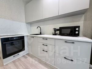 Стильный кухонный гарнитур, оснащён электрической варочной панелью, духовым шкафом, вытяжкой, а также имеется микроволновая печь, электрический чайник, стиральная машина и двухкамерный холодильник;