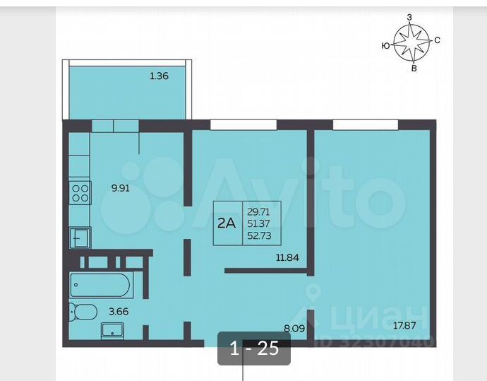 52 м²