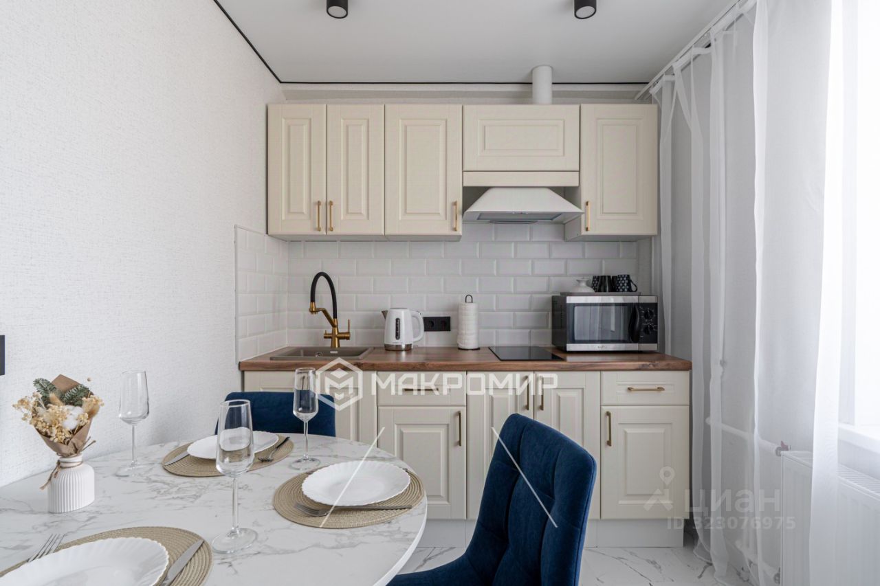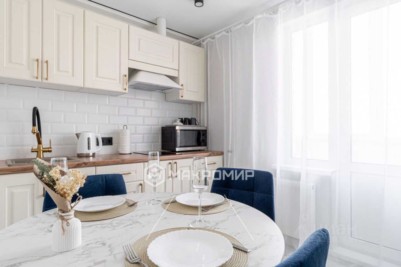 В квартире сделан евроремонт, установлена вся необходимая мебель и техника для комфортного проживания: телевизор, диван, шкаф, кровать, обеденный стол и стулья, варочная панель, холодильник, wi-fi, микроволновка, электрический чайник, стиральная машинка.