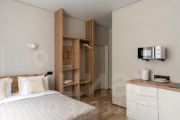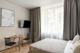 Комфортабельная студия на 2 этаже гостевого дома с видом на улицу Низенькая. В номере есть ванная комната с душевой кабиной, двуспальная кровать с ортопедическим матрасом, телевизор, шкаф и отдельная гардеробная.