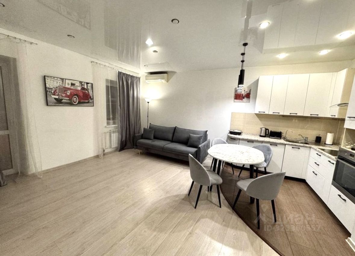 В квартире сделан евроремонт: все продумано до мелочей для вашего удобства. Обстановка включает мебель на кухне и в комнате, а также полный комплект техники: кондиционер, холодильник, посудомоечная машина, телевизор и стиральная машина. Санузел совмещенный с ванной, что добавляет удобства. Также имеется балкон.