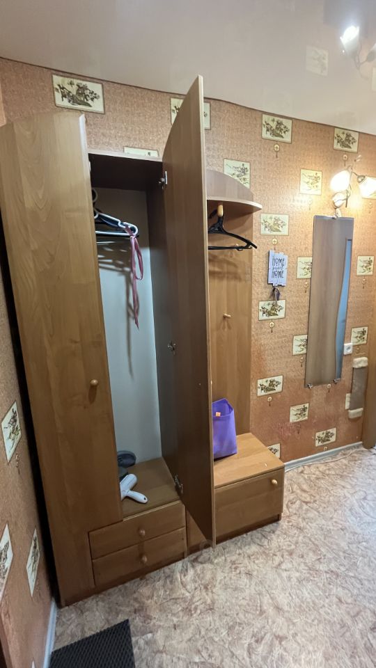 Прихожая не успела попасть под ремонт, по этому там старый линолеум (новый есть) и не переклеены обои.