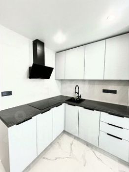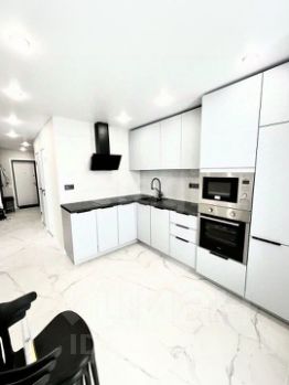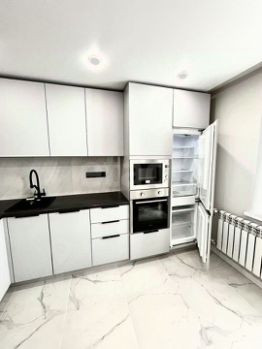 - Кухня с полной техникой: холодильник, микроволновка, духовой шкаф, посудомоечная машина, варочная панель, вытяжка, чайник и кухонные принадлежности